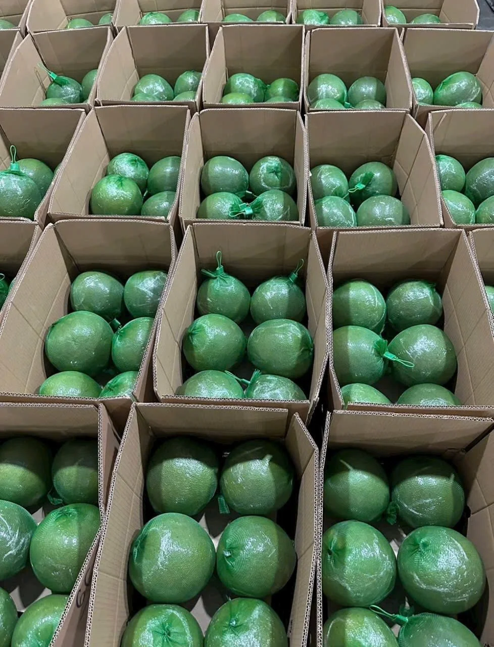 Bưởi da xanh Việt Nam được trồng trong nước, sẵn sàng xuất khẩu với thời gian bảo quản dài và vị ngọt cao.