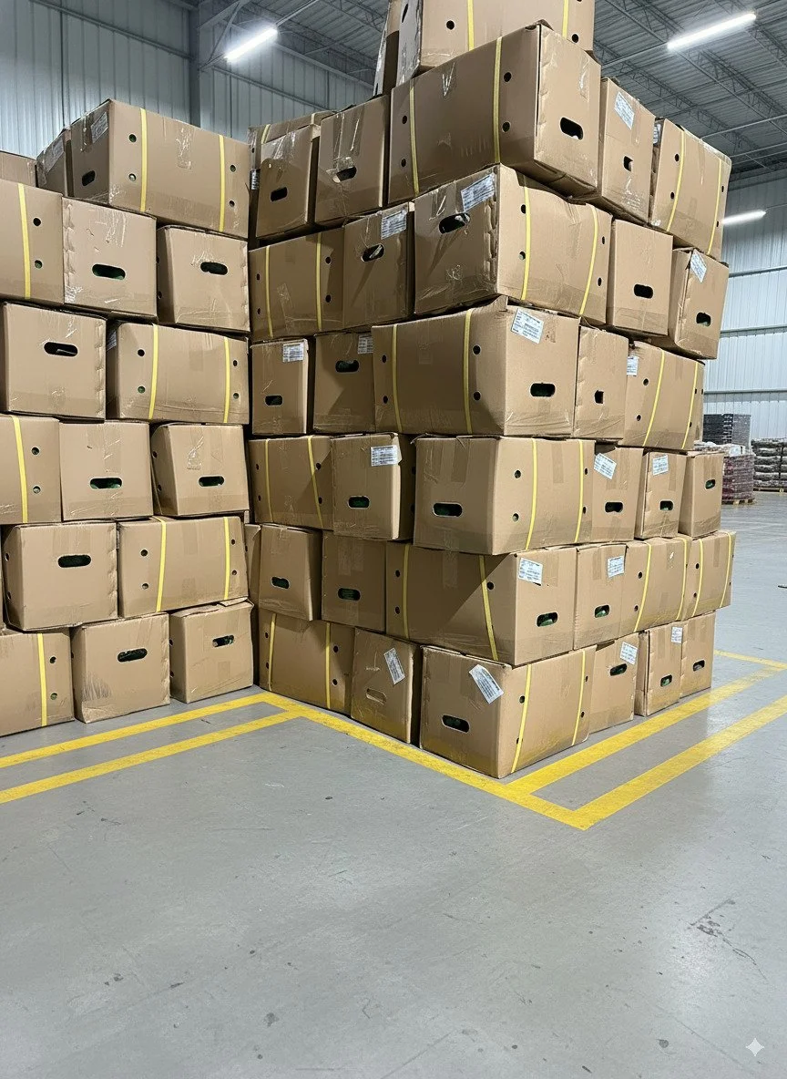 Đóng gói: 12 quả/thùng (40×60 cm), ~14–18 kg